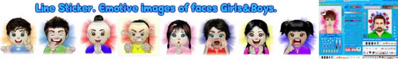 Line sticker. Emotive images of faces Boys and Girls.